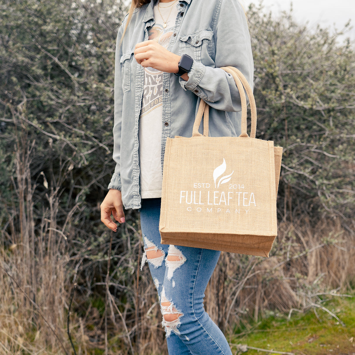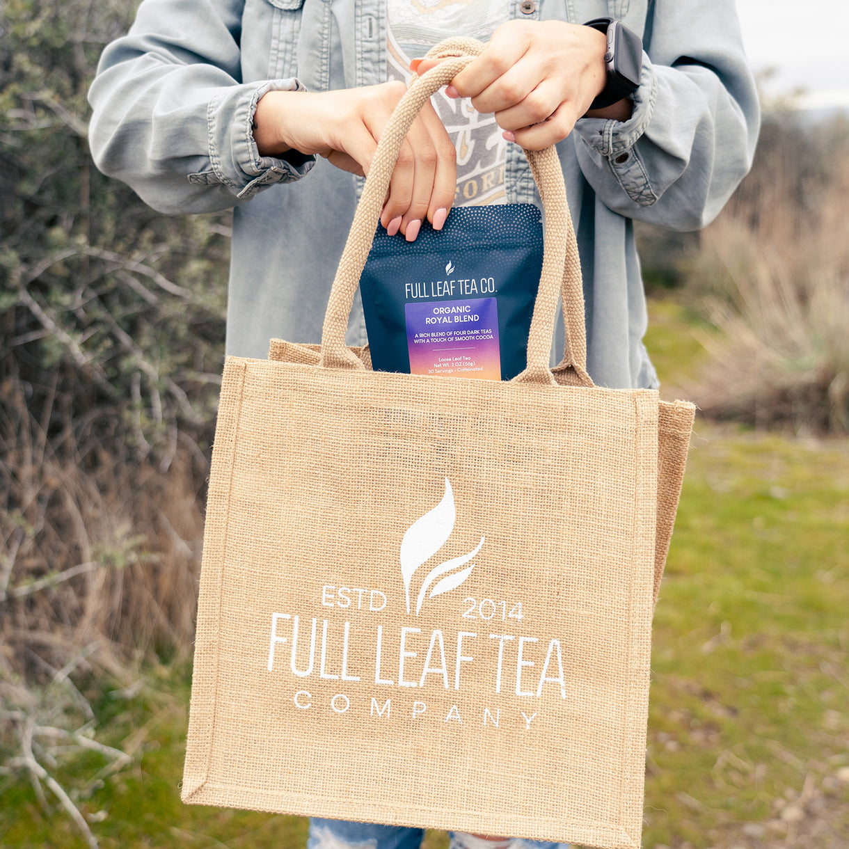 Carry your tea essentials in style with the new Signature Burlap Tote Bag!