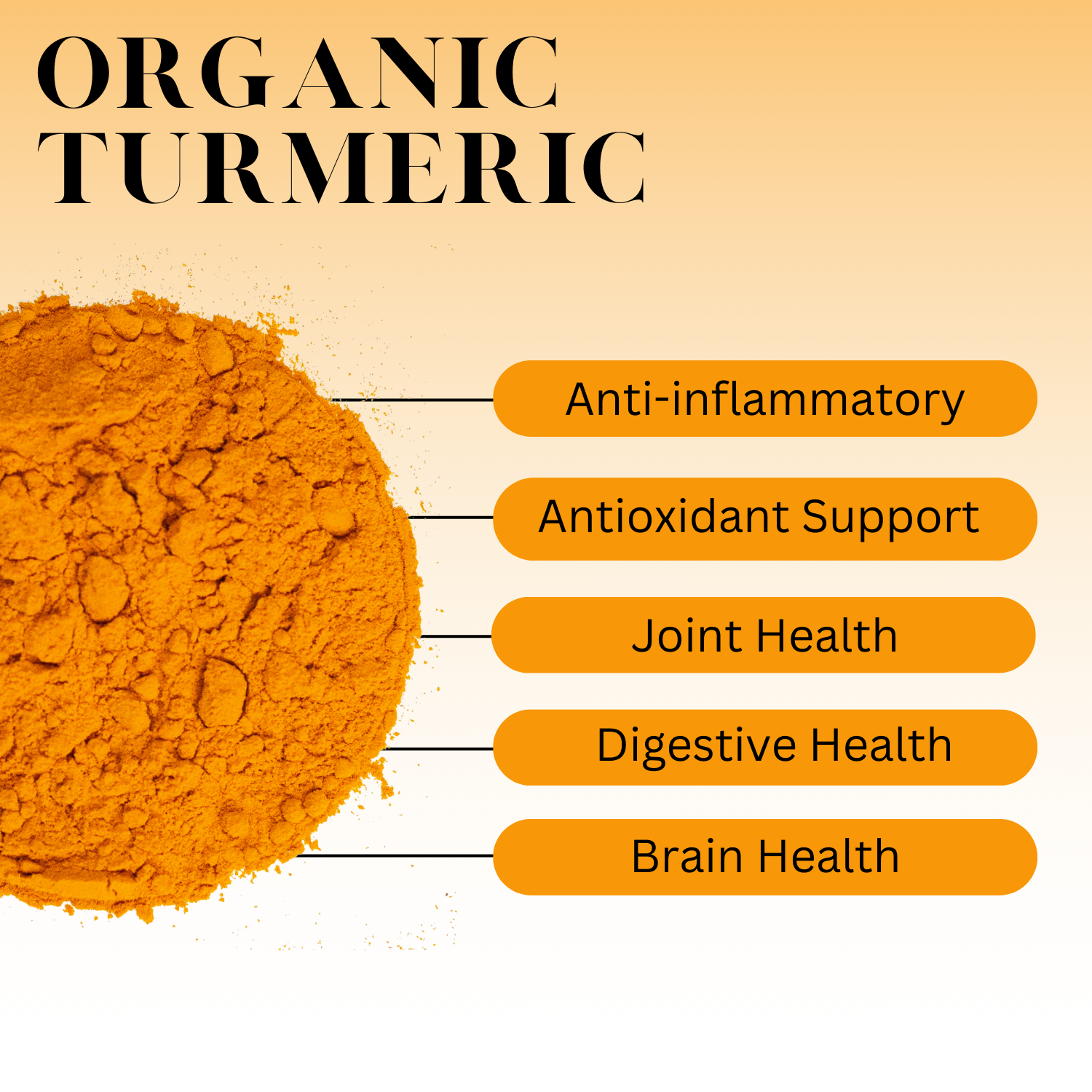 Curcumin in turmeric has strong anti-inflammatory properties, making it effective in reducing inflammation in the body. Chronic inflammation is linked to various health issues, including heart disease, cancer, and Alzheimer's. Incorporating organic turmeric into your diet can help manage inflammation and promote overall health.